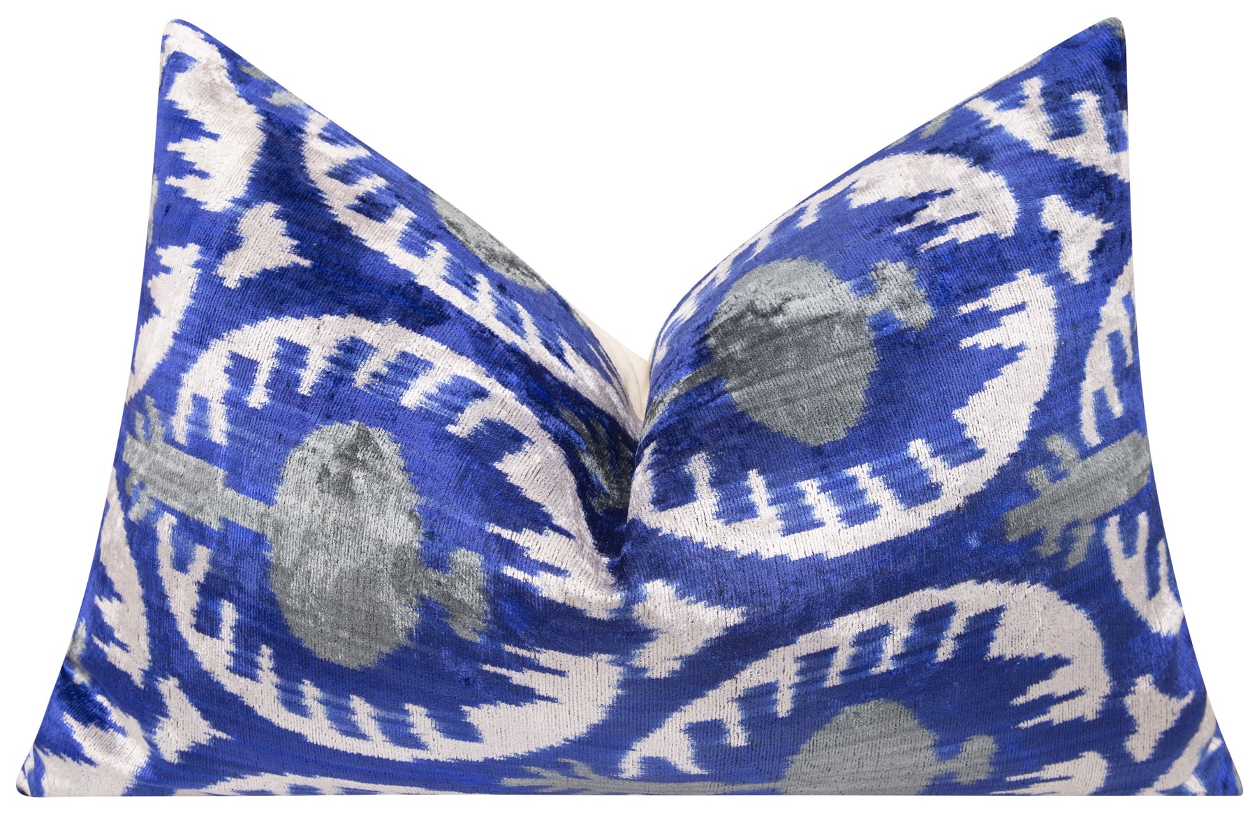 Elevate your home or design project with the Canvello Handmade Velvet Ikat Pillow. Featuring a vibrant blue and white ikat pattern, this 16x24-inch decorative throw pillow is a masterpiece of craftsmanship. Handmade from the finest velvet silk and vegetable-dyed for eco-conscious luxury, it brings a touch of elegance and sophistication to any space.