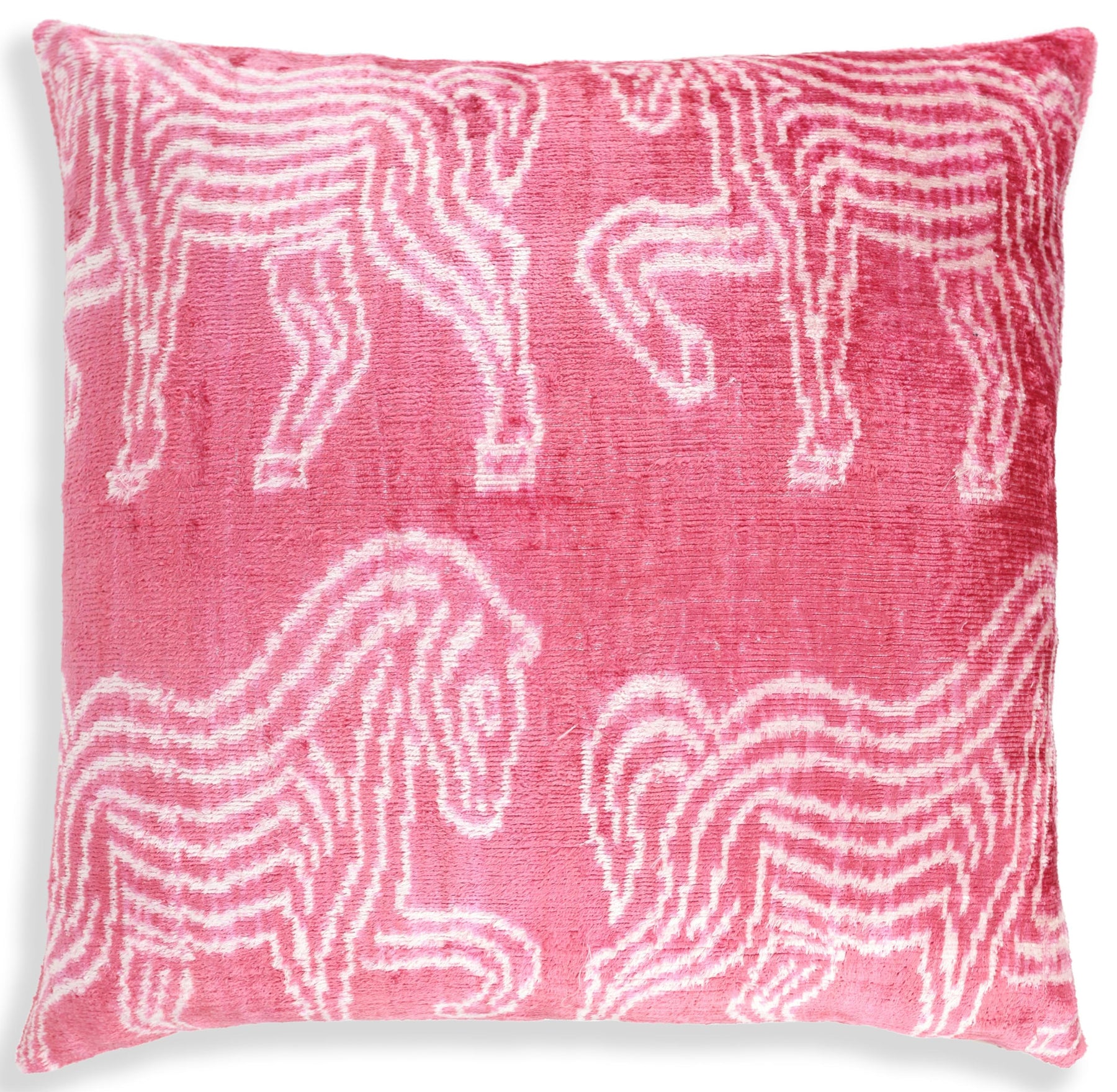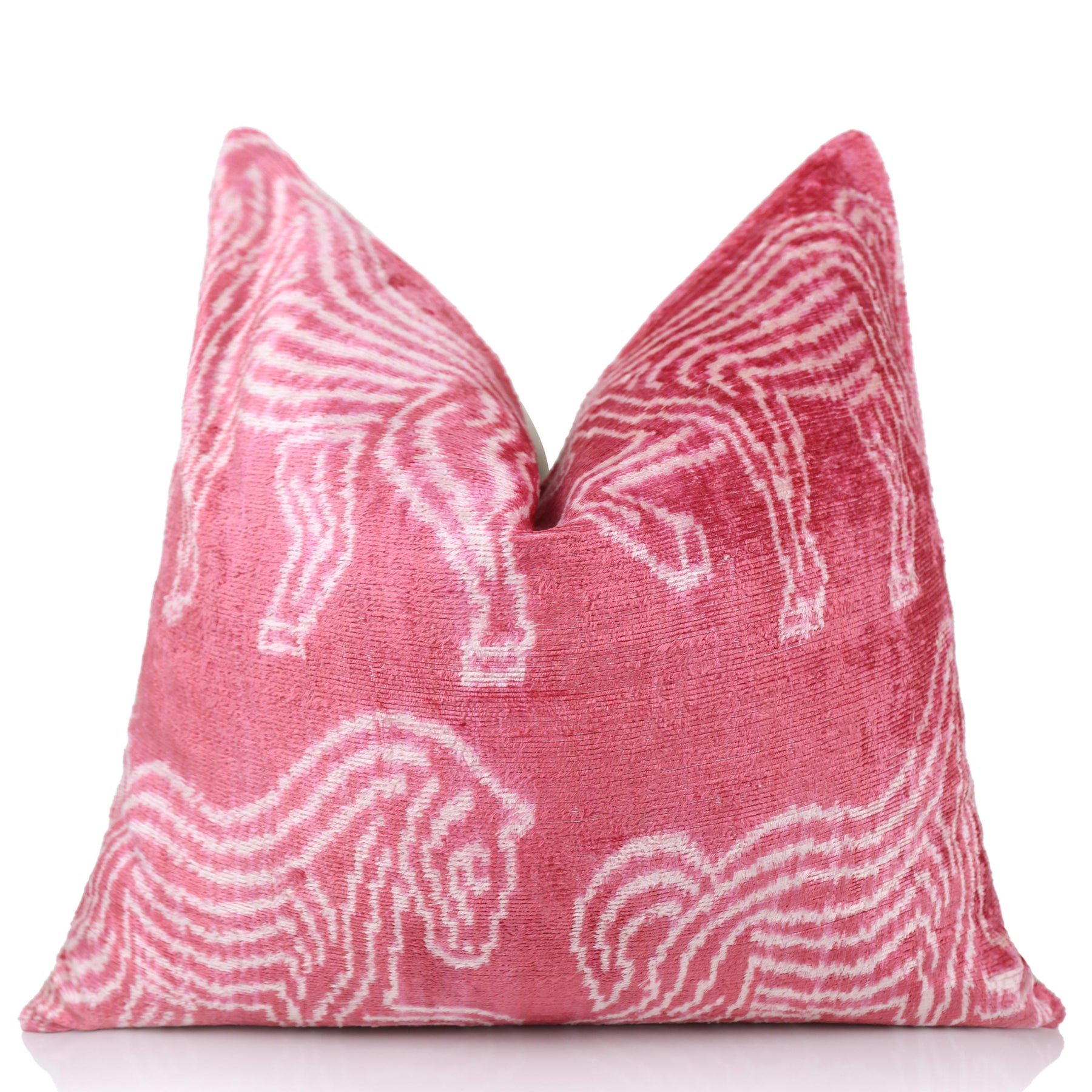 Chic and charming, this pink zebra-patterned silk velvet pillow captures the perfect balance of fun and luxury. The delicate sheen of silk velvet highlights the playful pattern while keeping an air of refinement. Pair it with neutral or blush-toned pillows for a layered, fashion-forward interior with a touch of personality.