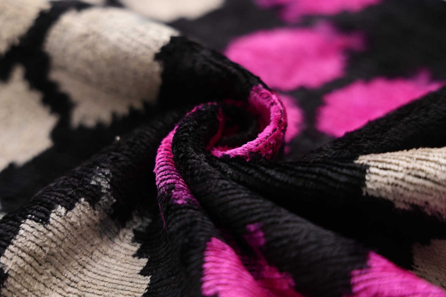 Texture: Rich, dense velvet pile with a slight sheen.