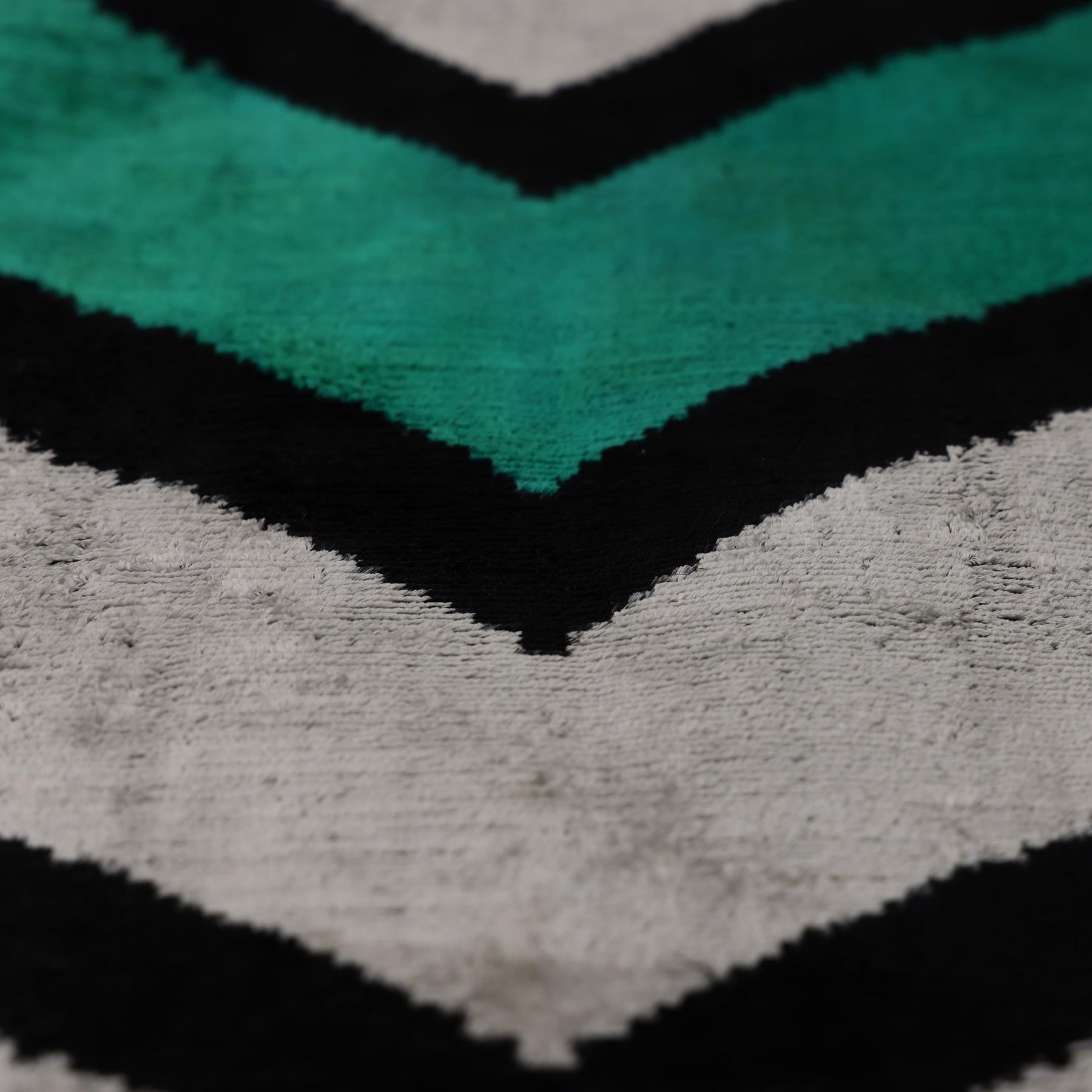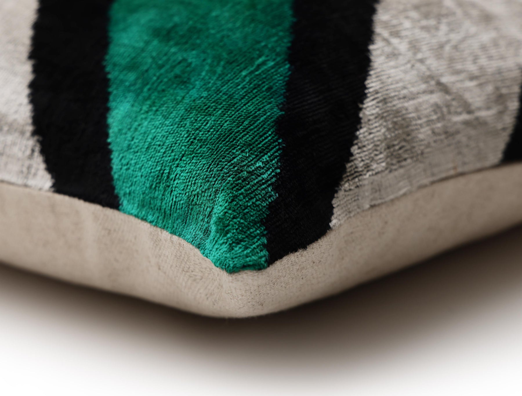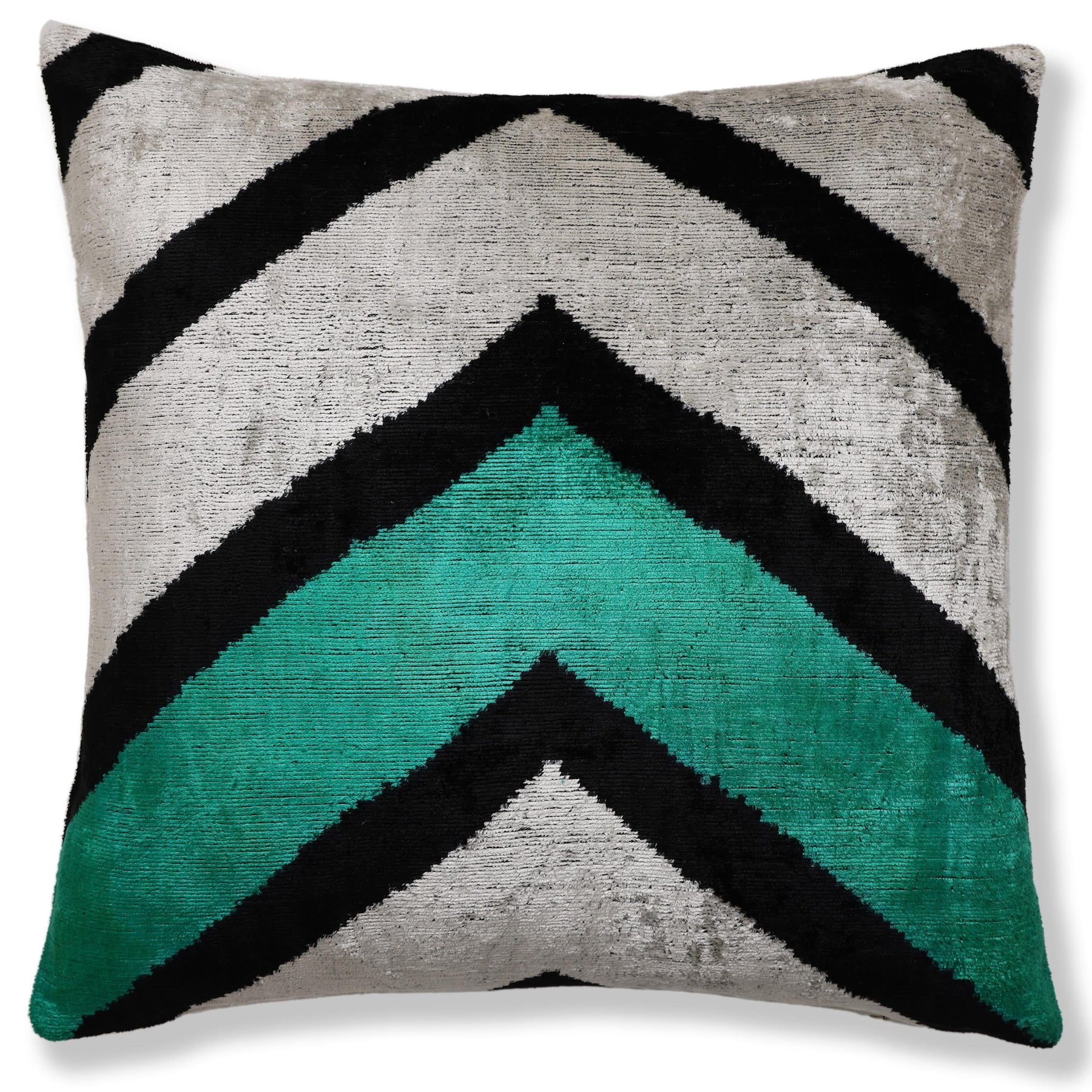Green Chevron Silk Velvet Throw Pillow 20x20 | Handmade Organic Luxury