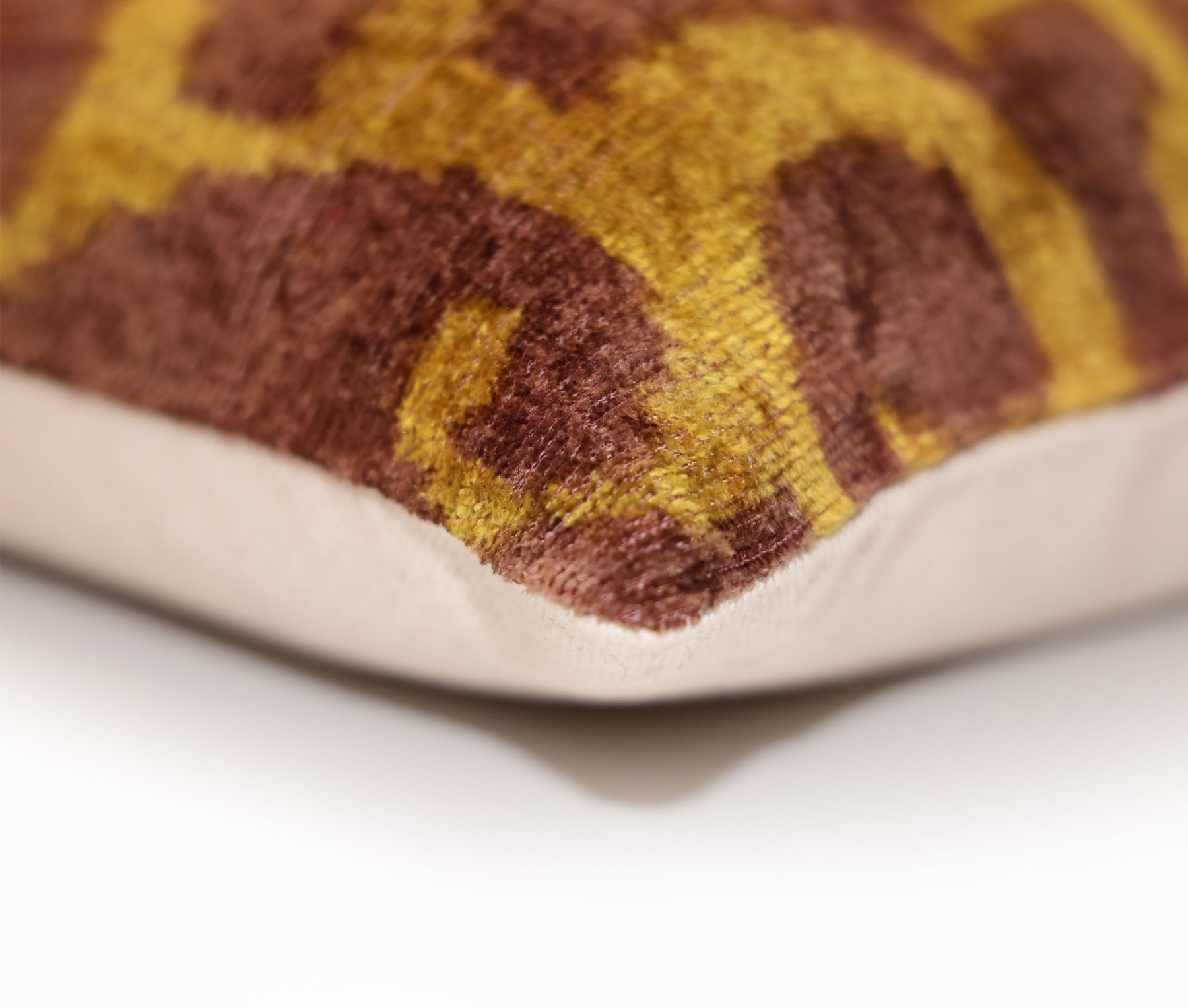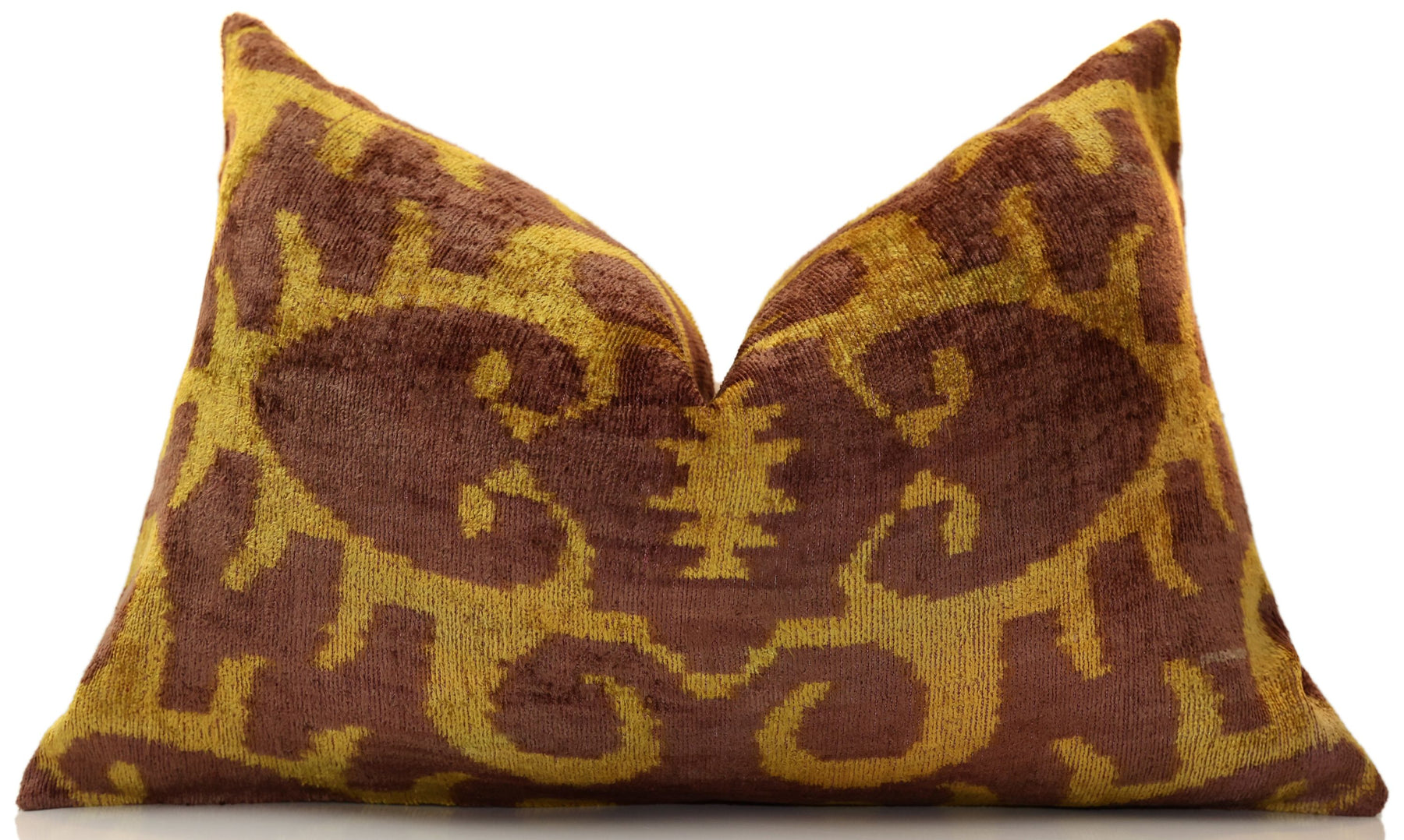 Introduce a masterclass in texture to your seating arrangement with our Hand-Knotted Silk Velvet Ikat Lumbar Pillow. This 16x24 statement piece is a marriage of ancient heritage and California's refined lifestyle. Each pillow is meticulously hand-woven and hand-knotted, utilizing organic vegetable dyes to create the rich, earthy tones of burnt ochre and deep mahogany that define the iconic Ikat motif.