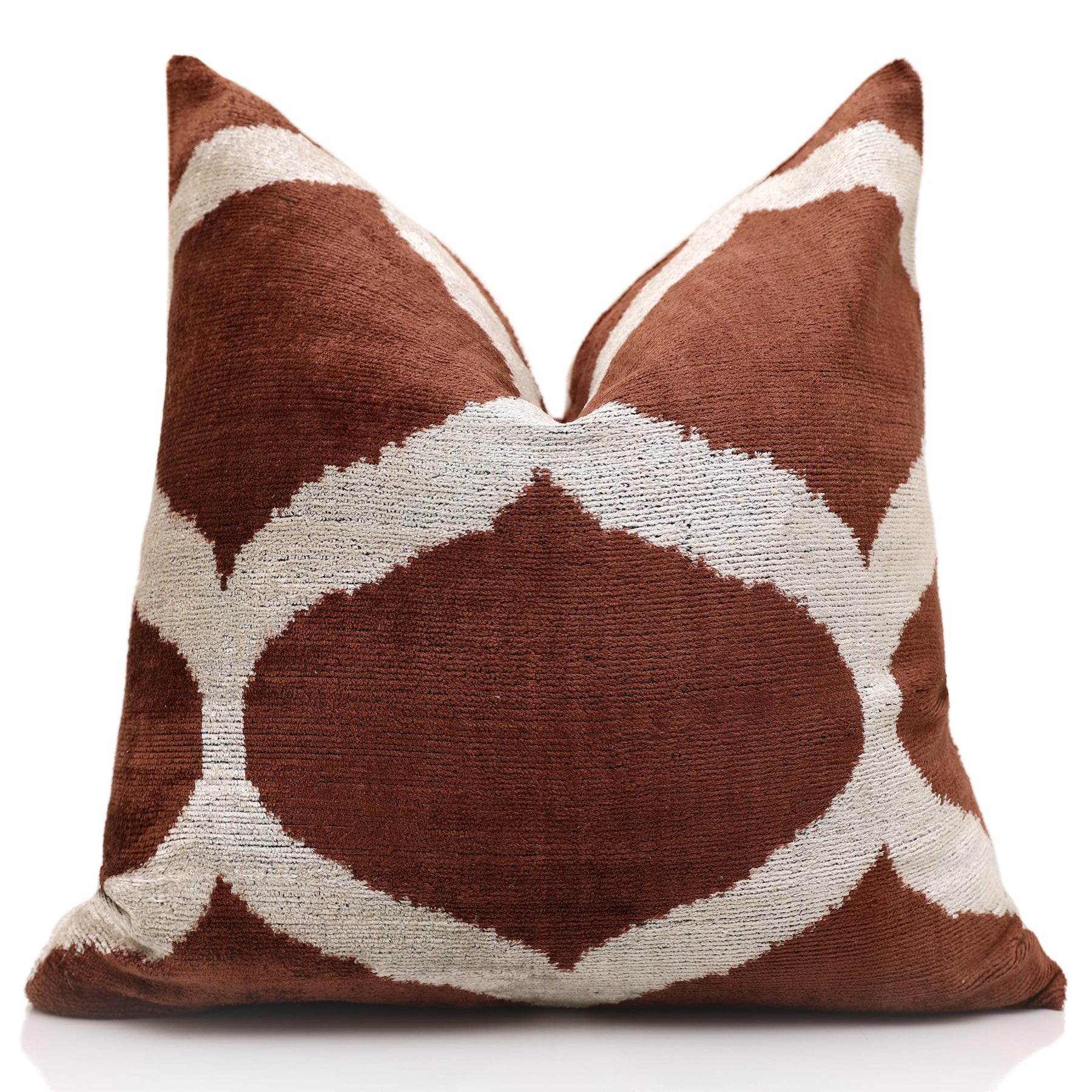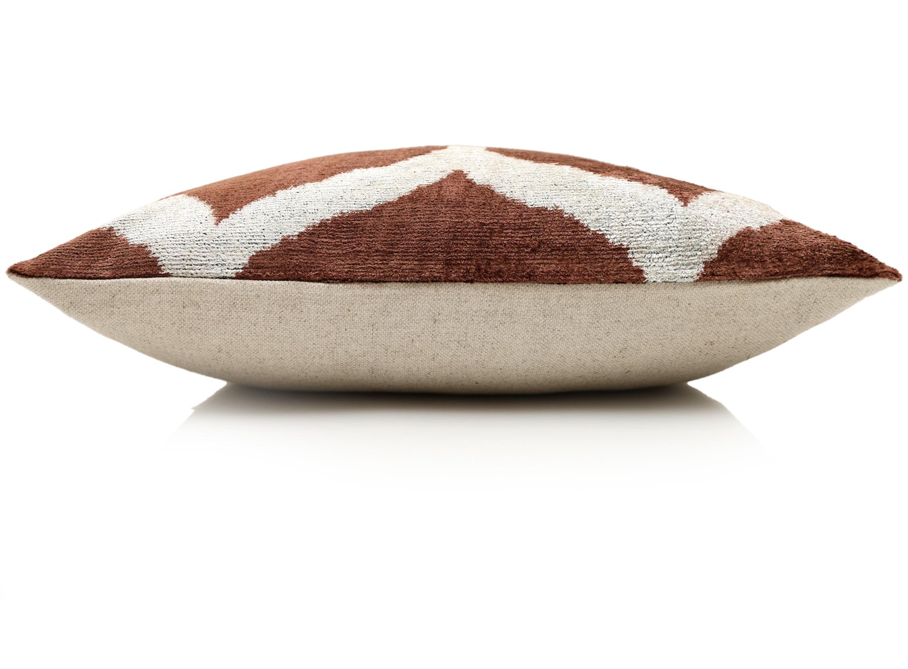 brown silk velvet pillow, handmade velvet pillow, 20x20 throw pillow, geometric designer cushion, modern brown pillow, luxury accent pillow, artisan silk velvet cushion, premium down feather insert, interior designer pillow, organic modern decor, transitional home decor pillow, warm neutral accent pillow, handcrafted california pillow, locally tailored pillow, high end throw pillow, modern sofa cushion, desert modern decor pillow, luxury home staging pillow, mycanvellohome