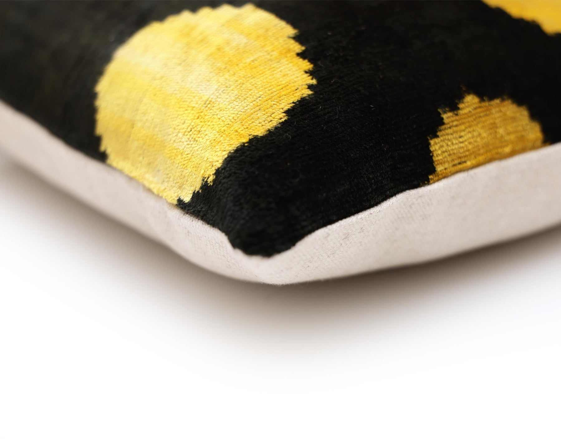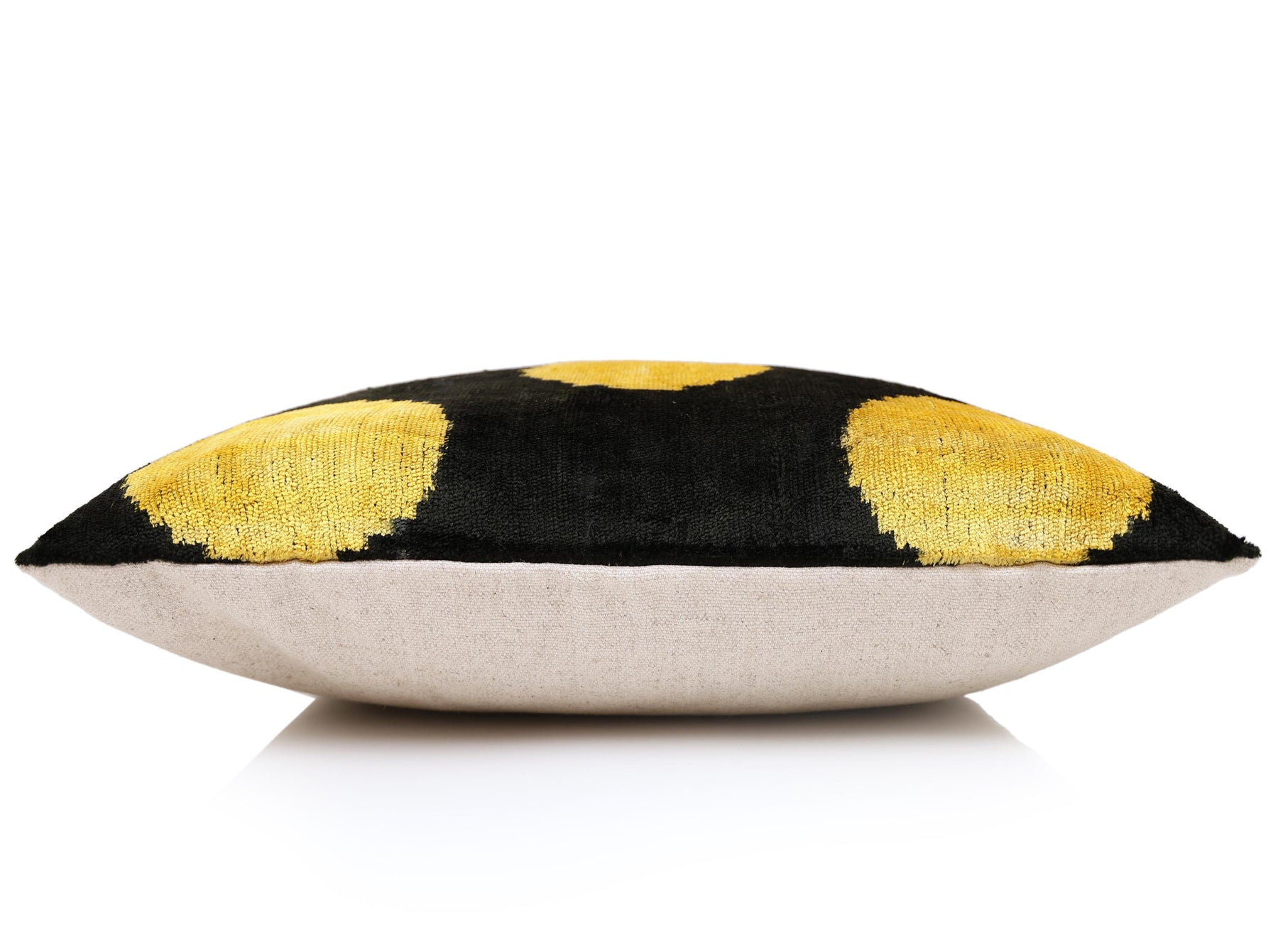 Dyed exclusively with organic vegetable dyes, the black appears deep and matte while the gold tones glow softly, responding beautifully to natural and ambient light. The result is a sophisticated statement pillow that adds contrast, warmth, and visual rhythm to curated interiors.