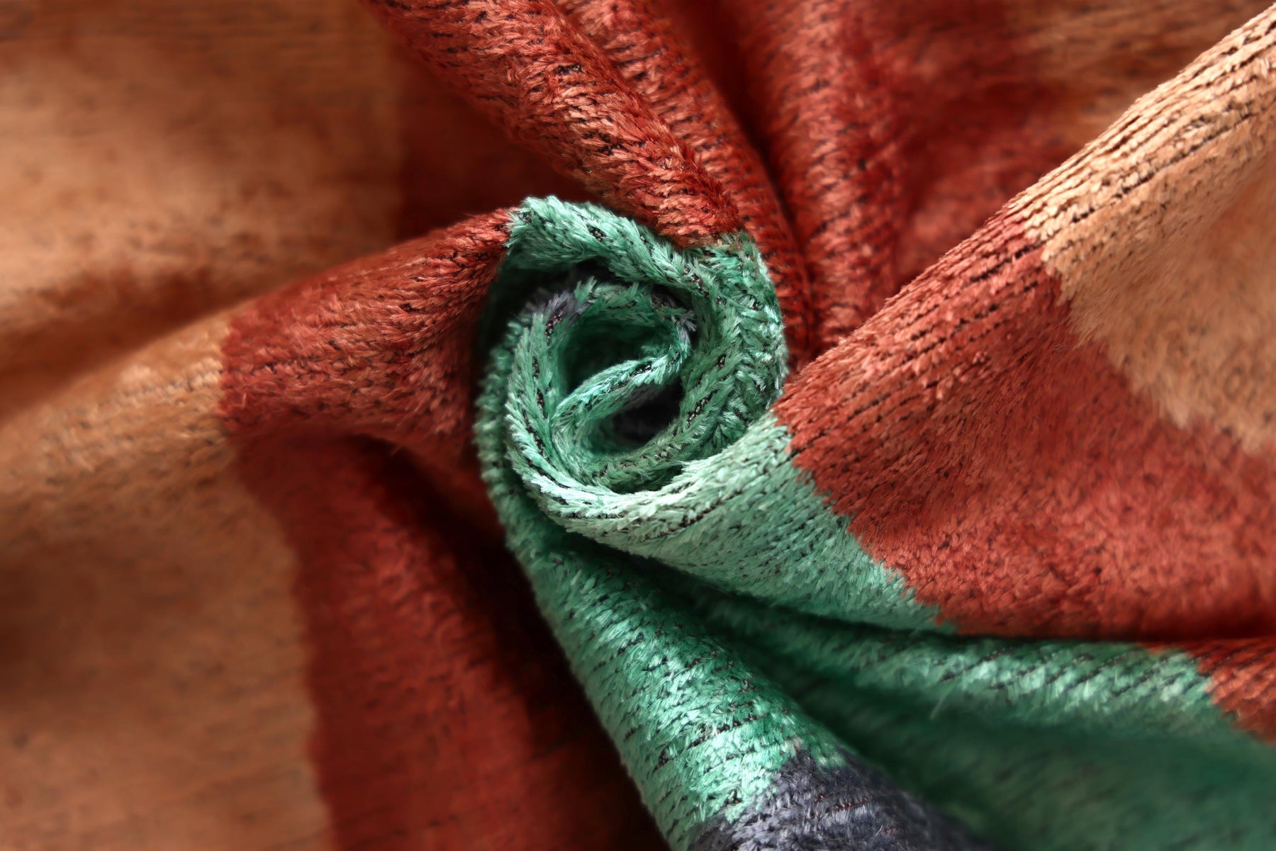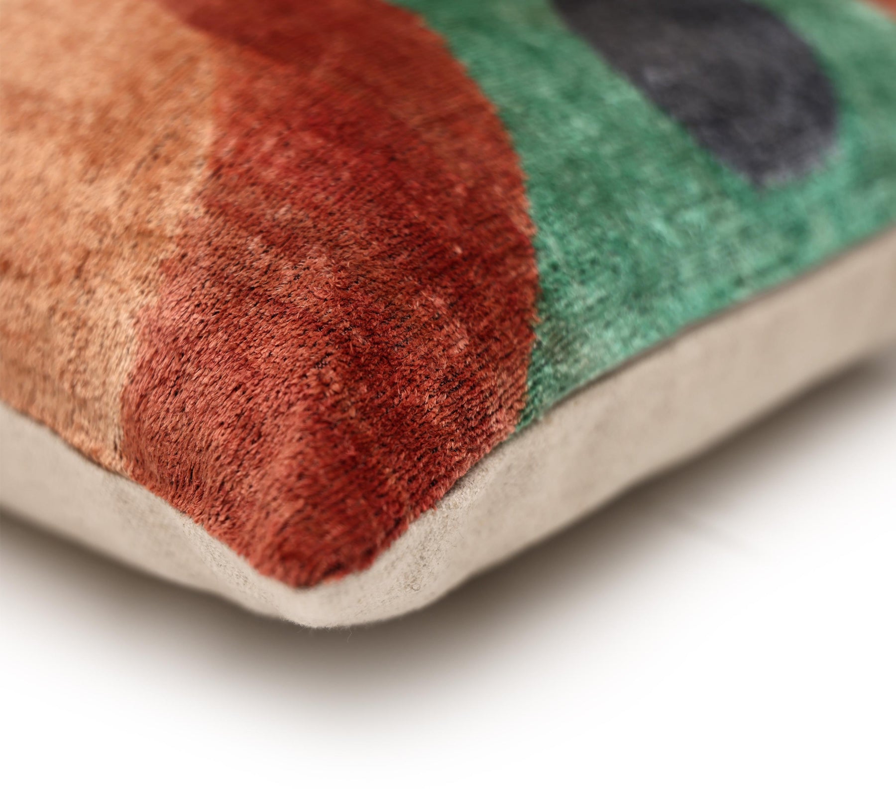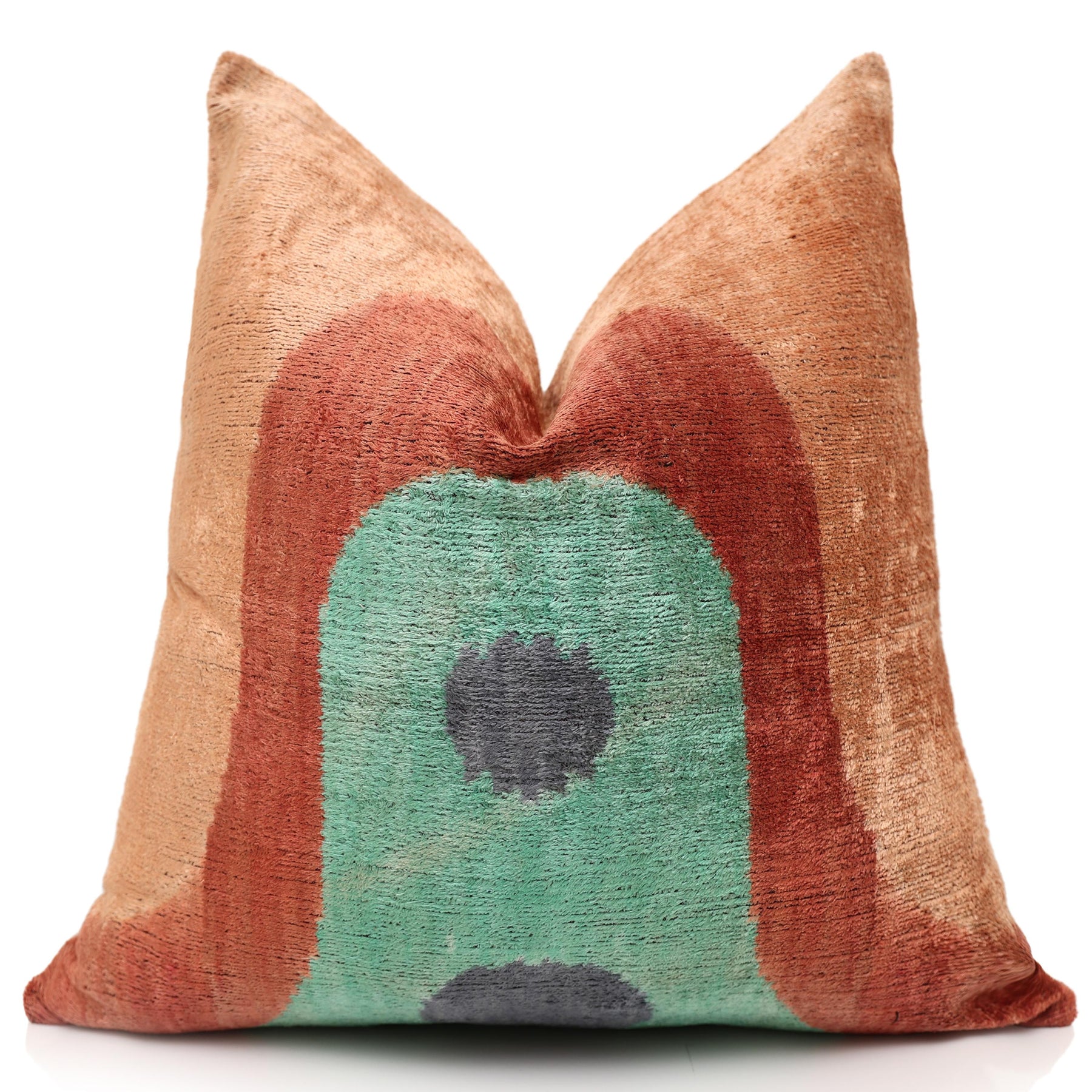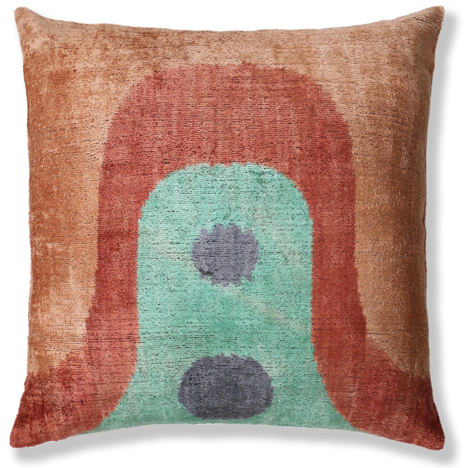 Make a fearless design statement with the unexpected palette of our Hand-Knotted Silk Velvet Abstract Arch Pillow.