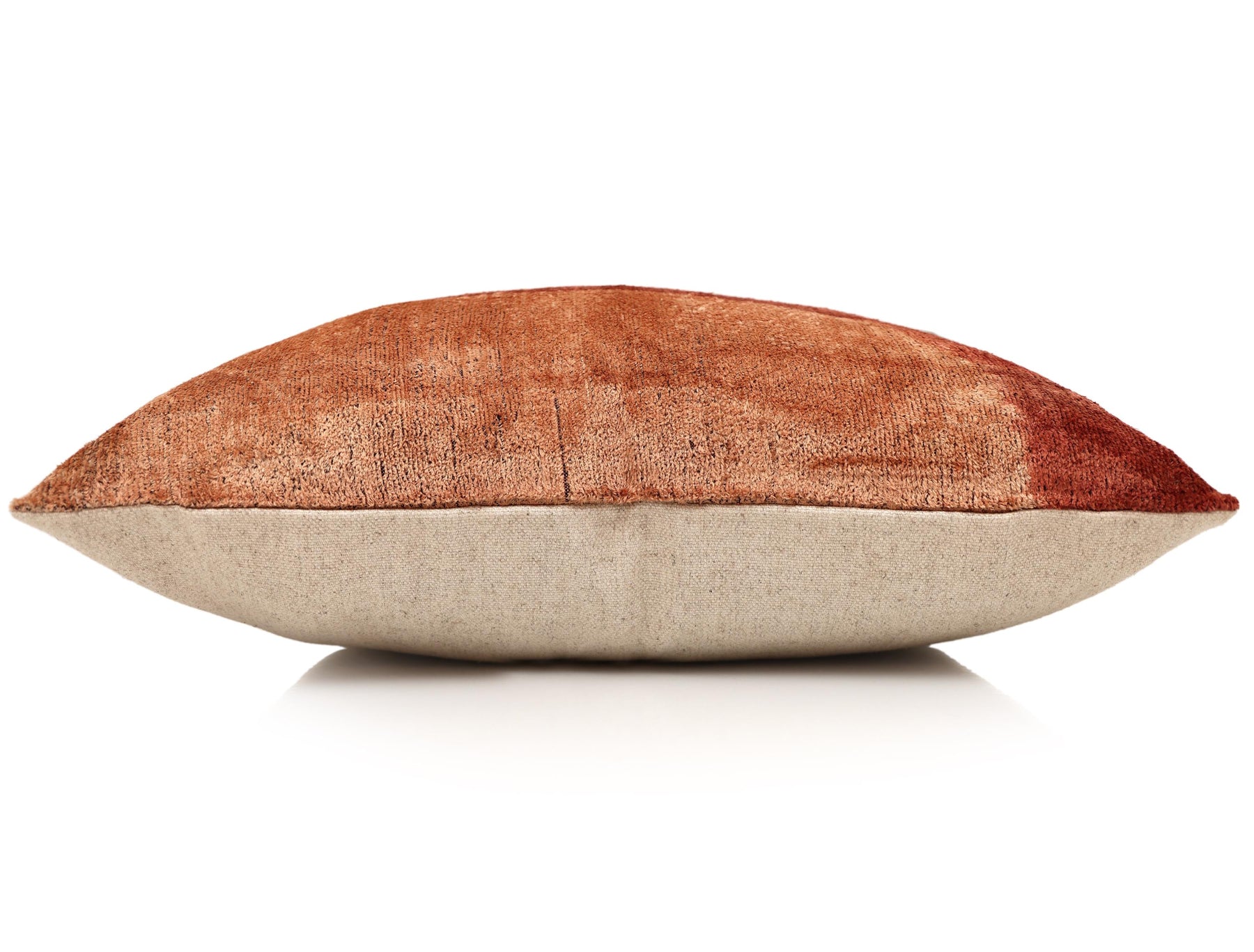 Tailored in our California atelier, this pillow offers a sensory experience of pure luxury. The silk velvet pile is incredibly soft and fluid, draping beautifully to showcase the sheen of the copper tones. To ensure it stands as a substantial design element in your room, we include a premium down-feather insert for lasting comfort and shape.