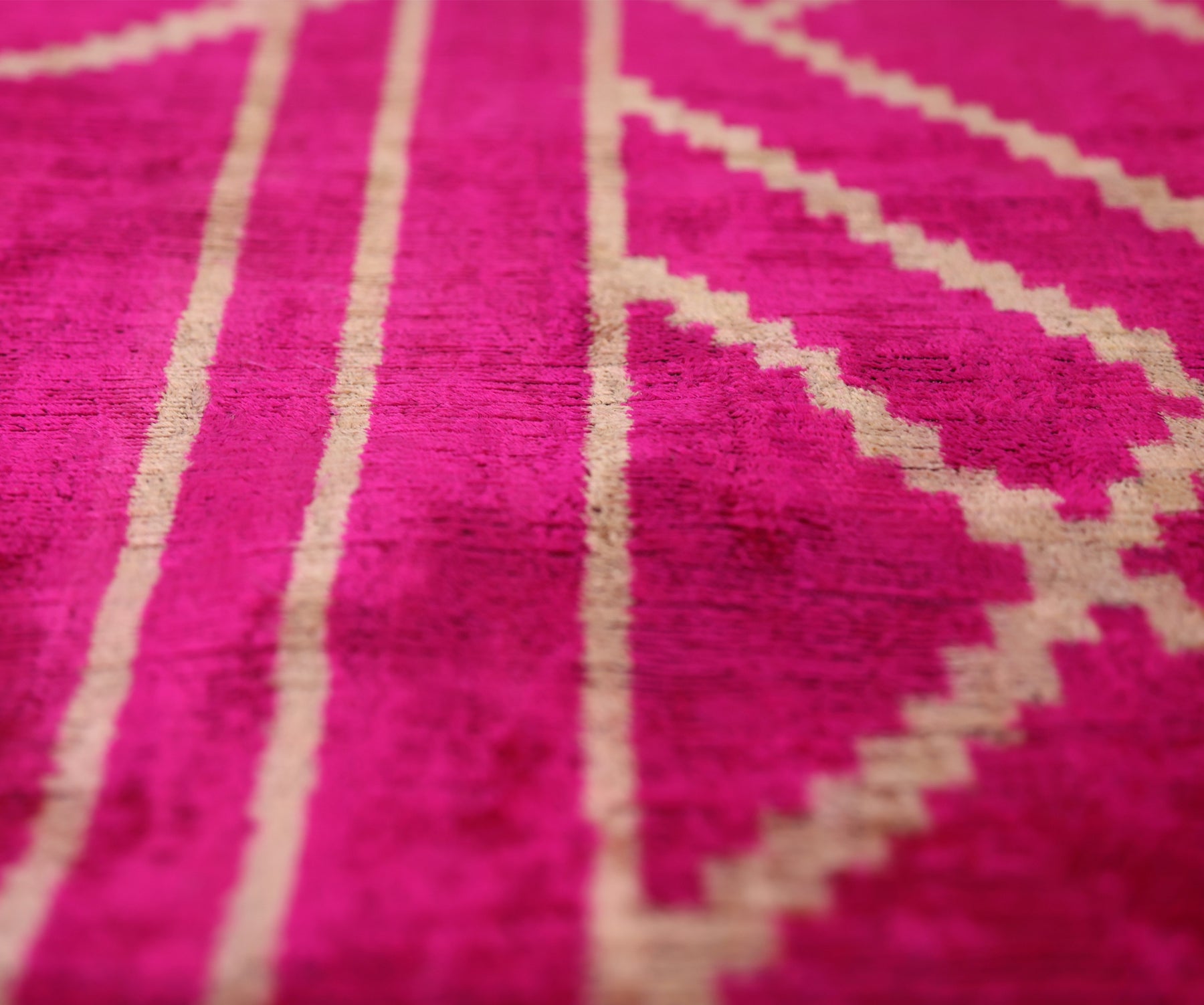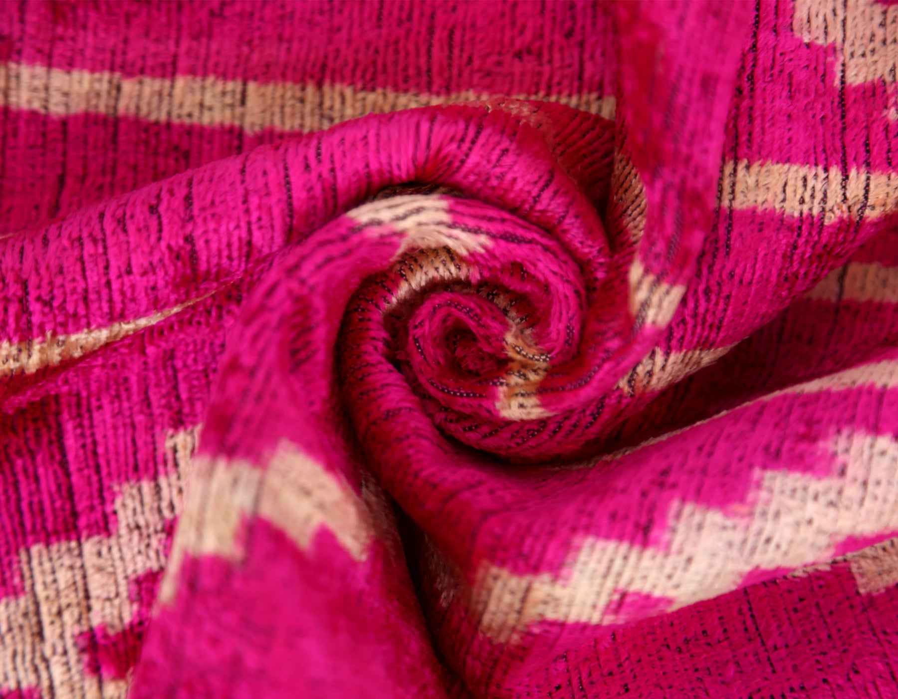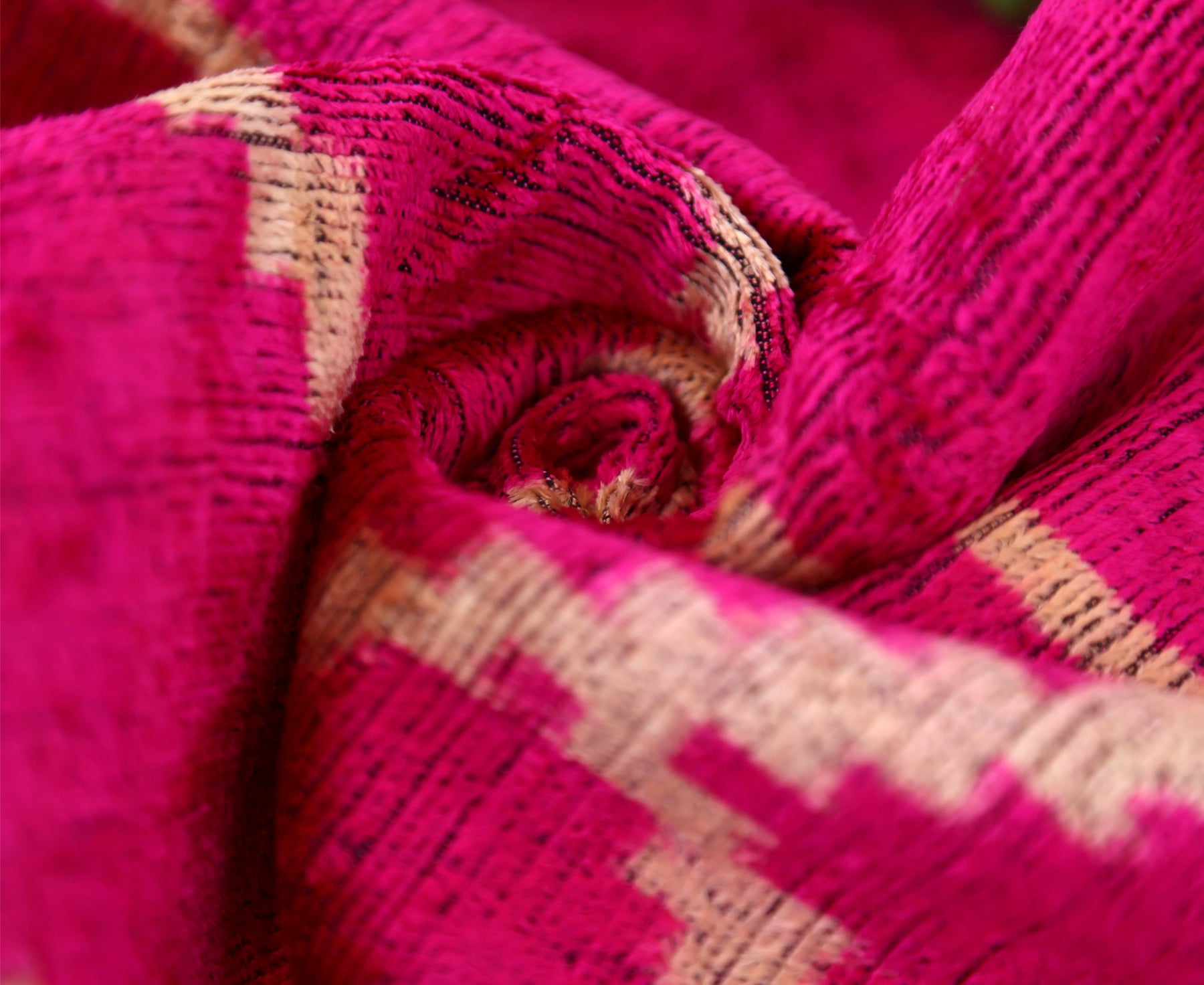 Vegetable-dyed in vibrant fuchsia pink with champagne-gold accents