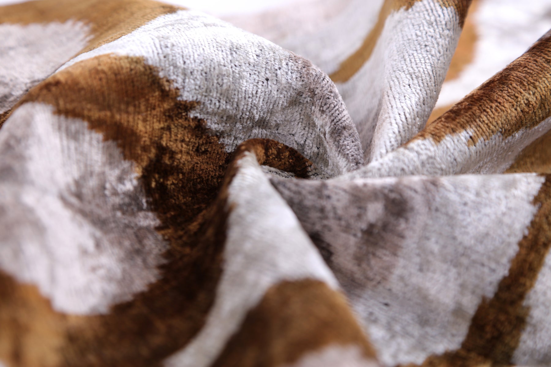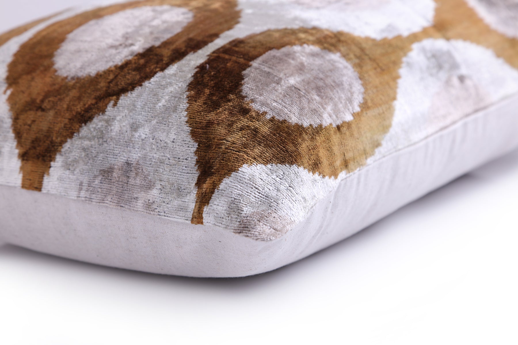 Elevate your space with a true statement of craftsmanship. This luxury 16x24 inch throw pillow is handcrafted in our California atelier using authentic silk velvet, sourced directly from traditional looms in Turkey and Uzbekistan. Dyed with organic vegetable pigments, the earthy blend of caramel, ivory, and smoke-gray tones adds both warmth and sophistication to any room.
