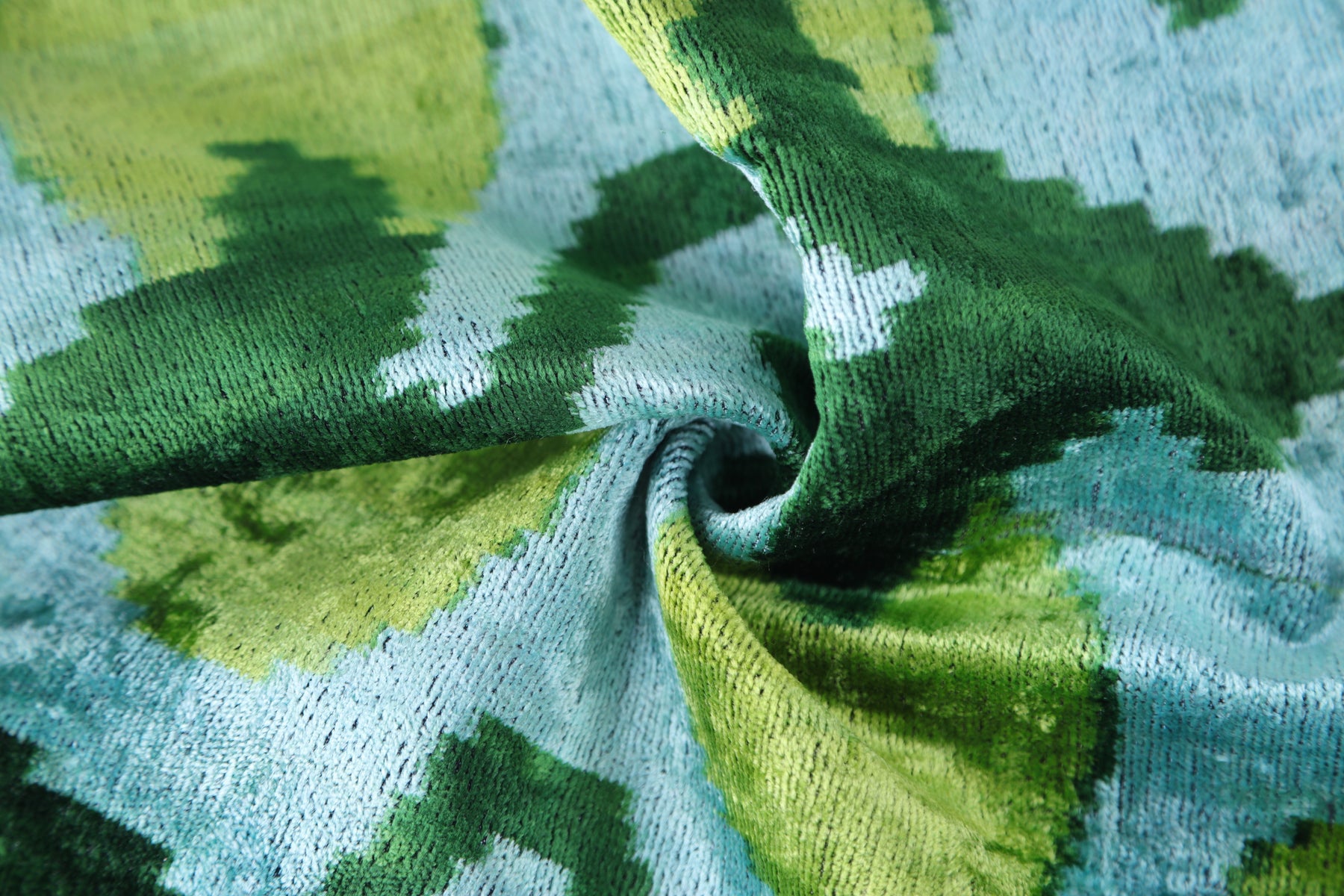 Naturally vegetable-dyed in aqua, jade, and chartreuse tones