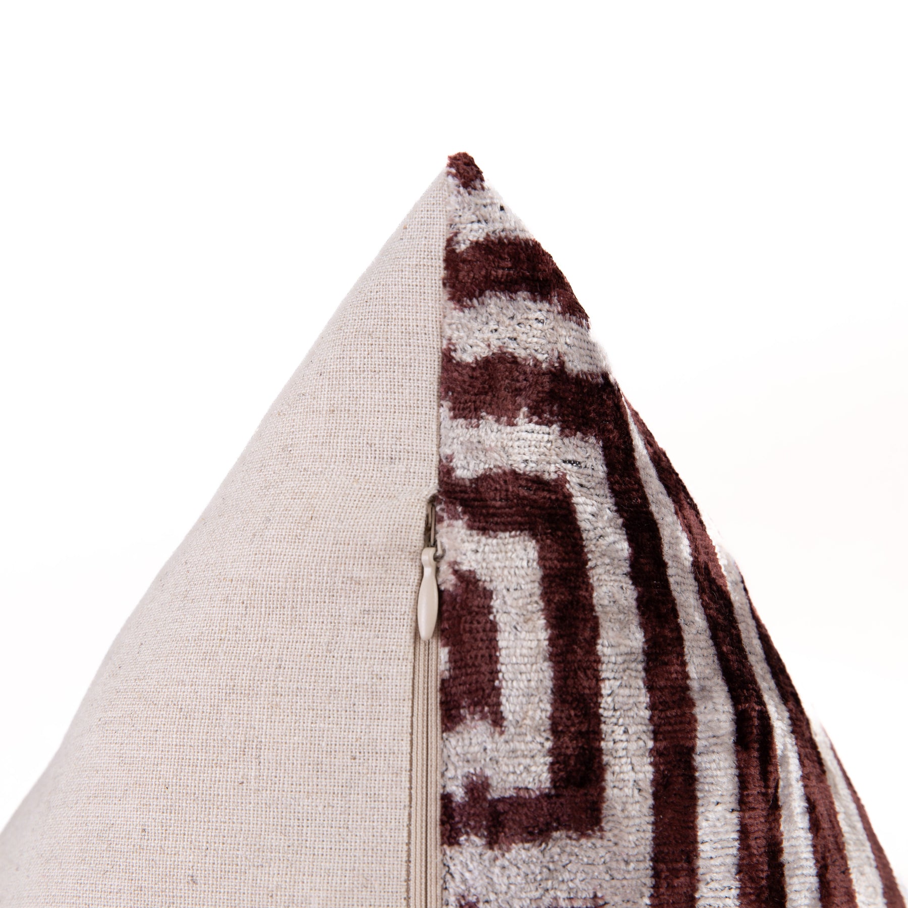 Enhance your home with this elegant handmade velvet throw pillow, crafted using natural vegetable dyes. Showcasing a striking geometric square pattern in a rich brown and beige combination, this luxurious pillow adds depth and sophistication to any interior. Measuring 16x24 inches, it's perfect for sofas, chairs, and beds, offering a refined accent to your space. The premium down feather insert ensures ultimate plushness and comfort. Whether you're styling a contemporary, minimalist, or industrial-inspired setting, this pillow effortlessly elevates your decor. Its soft yet durable silk velvet fabric promises both luxury and longevity, making it a timeless addition to your home decor collection.