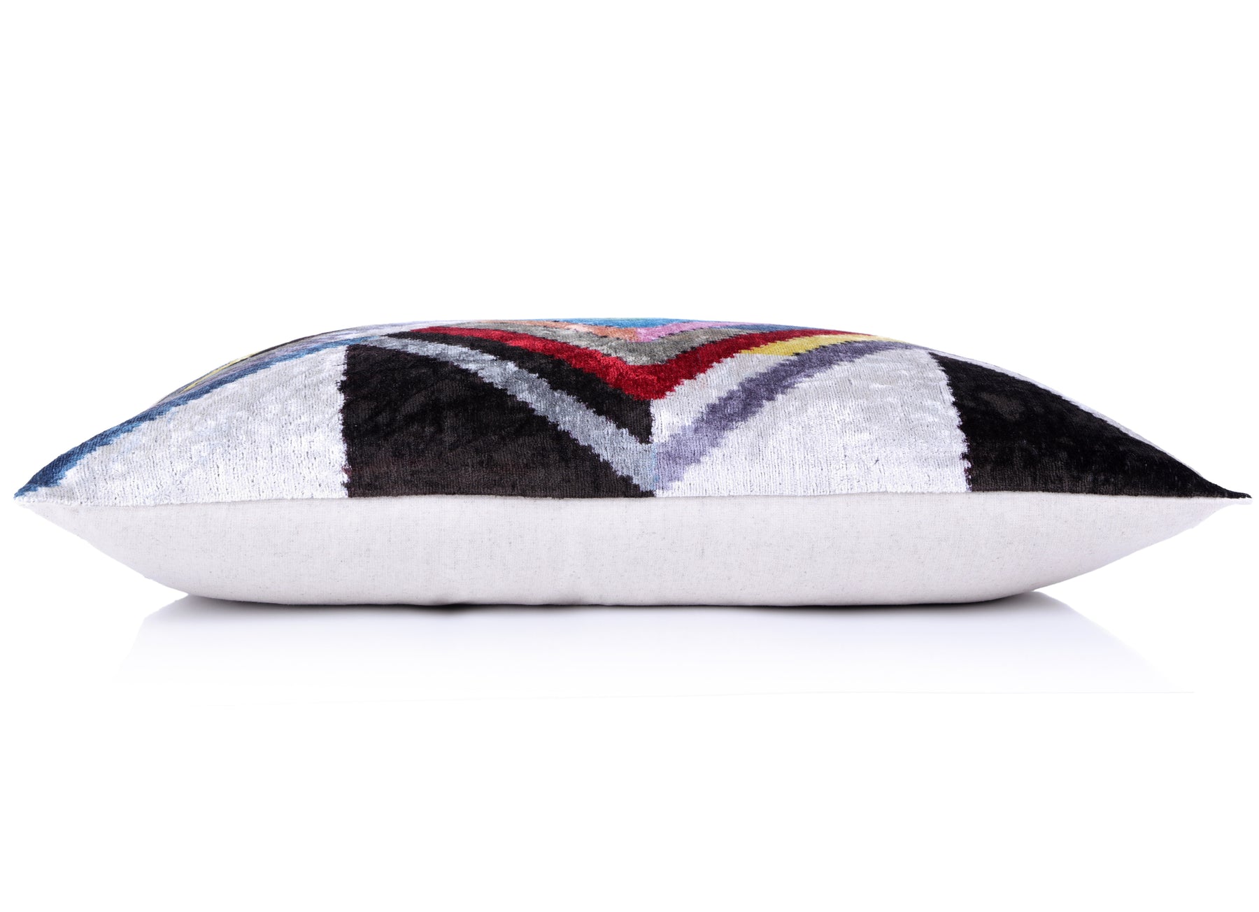 Make a bold, vibrant statement in your home with our Luxury Chevron Velvet Throw Pillow. Featuring a striking multicolor ikat-inspired chevron design, this pillow is made from authentic silk velvet, vegetable-dyed and handwoven in Turkey and Uzbekistan.