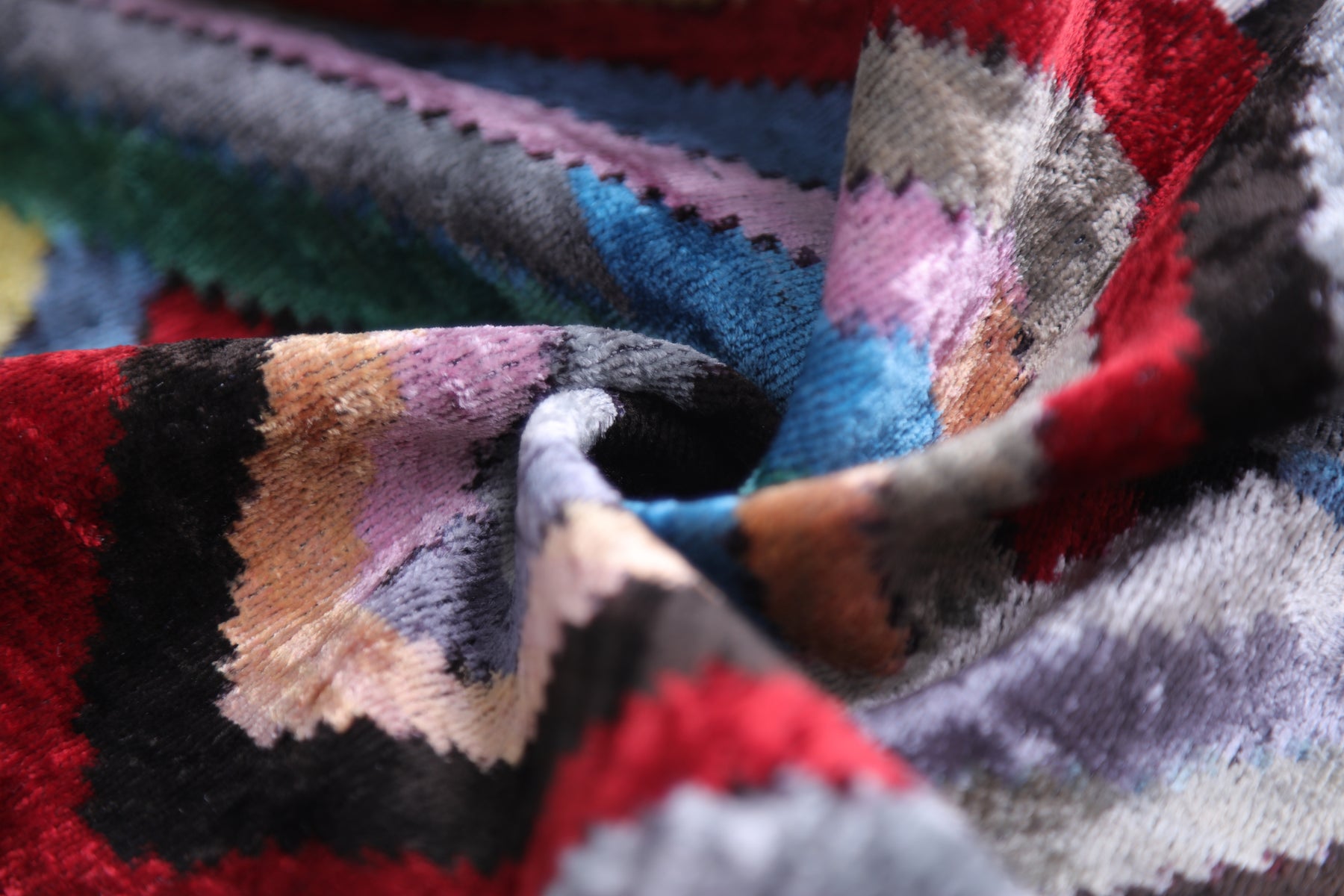 Bold multicolor chevron pattern with rich texture and soft luster