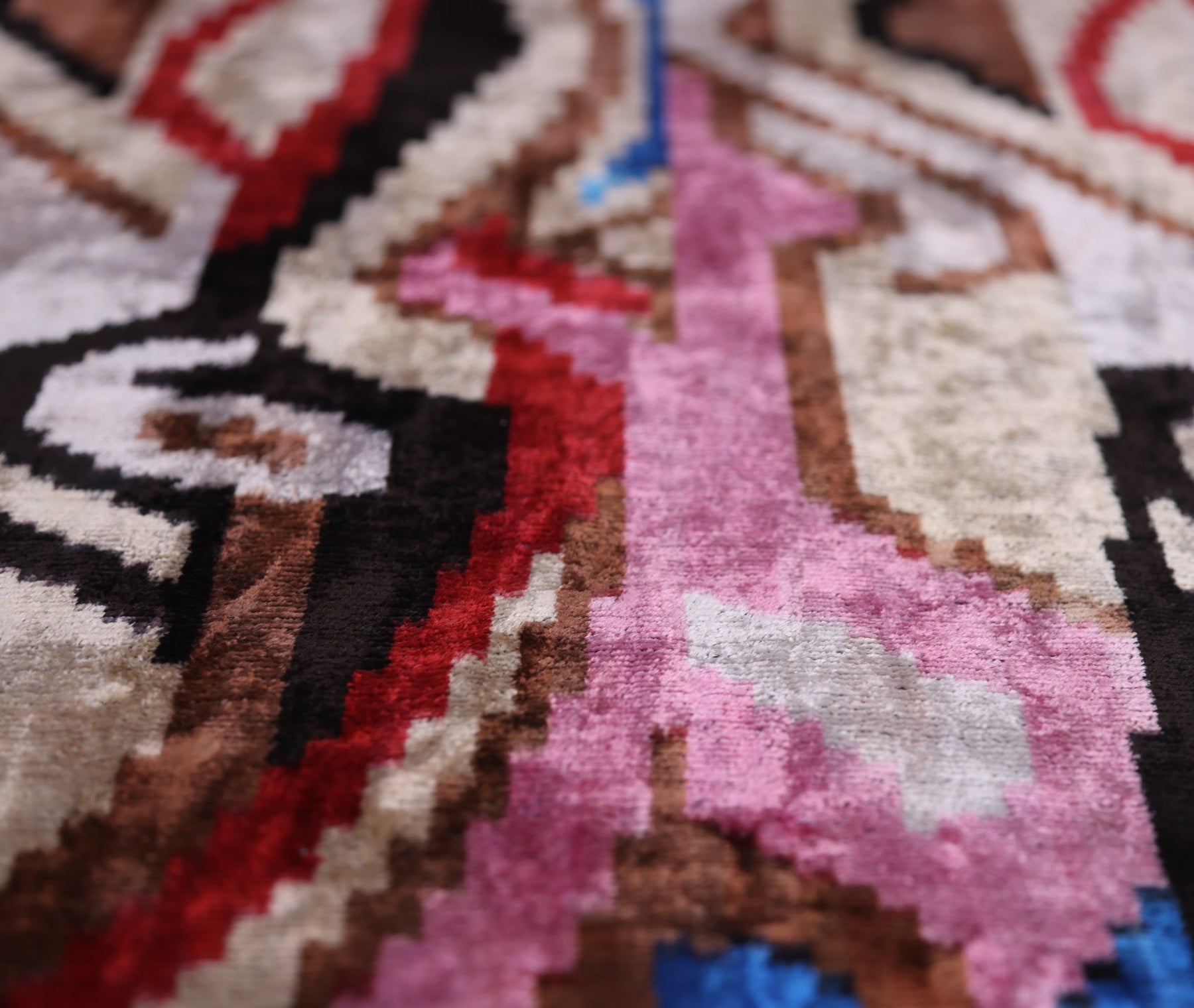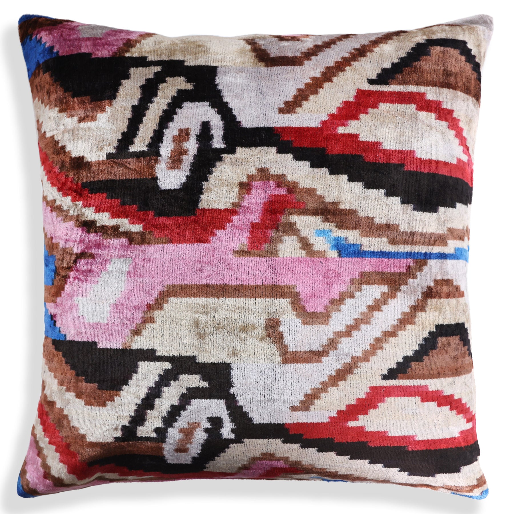 Abstract Multicolor Silk Velvet Pillow – 20x20 Handmade Art Deco Cushion